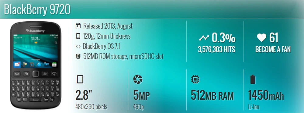 1 x Blackberry 9720 Phone